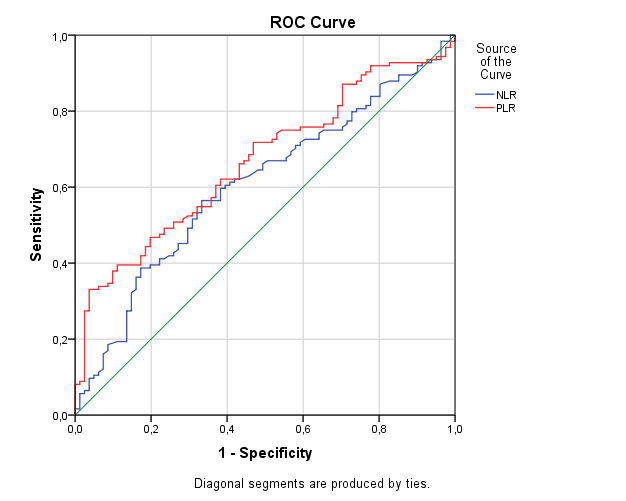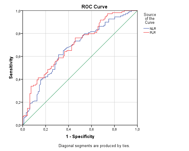 Figure 1. ROC Curve of NLR and PLR for the presence of DVT.